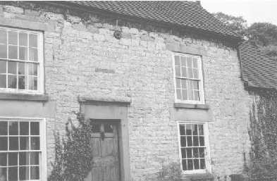 Generally, the larger C18 houses have stressed quoins – on one building (Flaxdale House, photograph 2) they are rusticated – and the dun or reddish sandstone/gritstone contrasts strongly with the grey limestone walls. Smaller houses and older houses place less emphasis on the quoins – using rough dressed limestone, or intermittent quoins (photograph 6), or have no quoins.